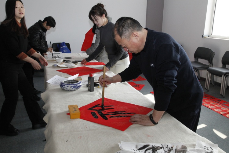 活动中,公安文联文艺骨干表演了独唱、戏曲联唱、舞蹈、诗朗诵等文艺节目,把活动推向高潮。之后,书画爱好者现场挥毫泼墨,书写书法作品和迎新春春联,为赵王集团送去新春美好祝福。